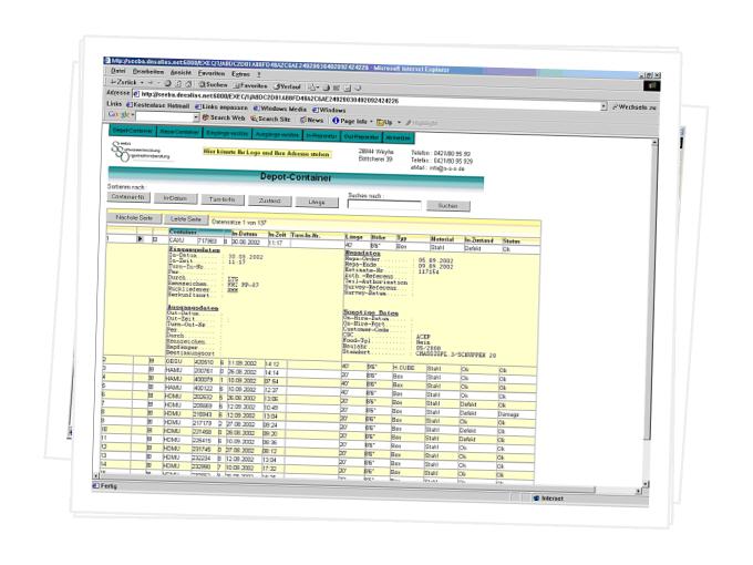 COSI Web informiert Ihre Kunden auf Ihrer Internetseite aktuell über den Container-Bestand, Reparatur-Bestand, Ein- und Ausgänge von Containern sowie Reparatur-Authorisationen und -Fertigmeldungen.